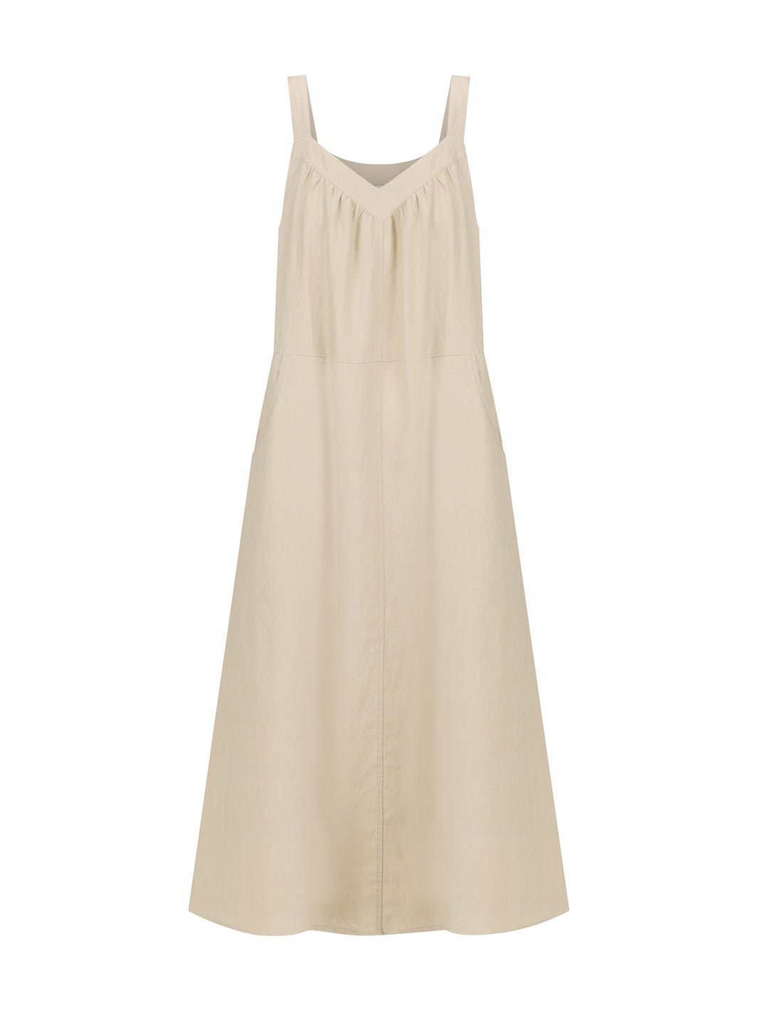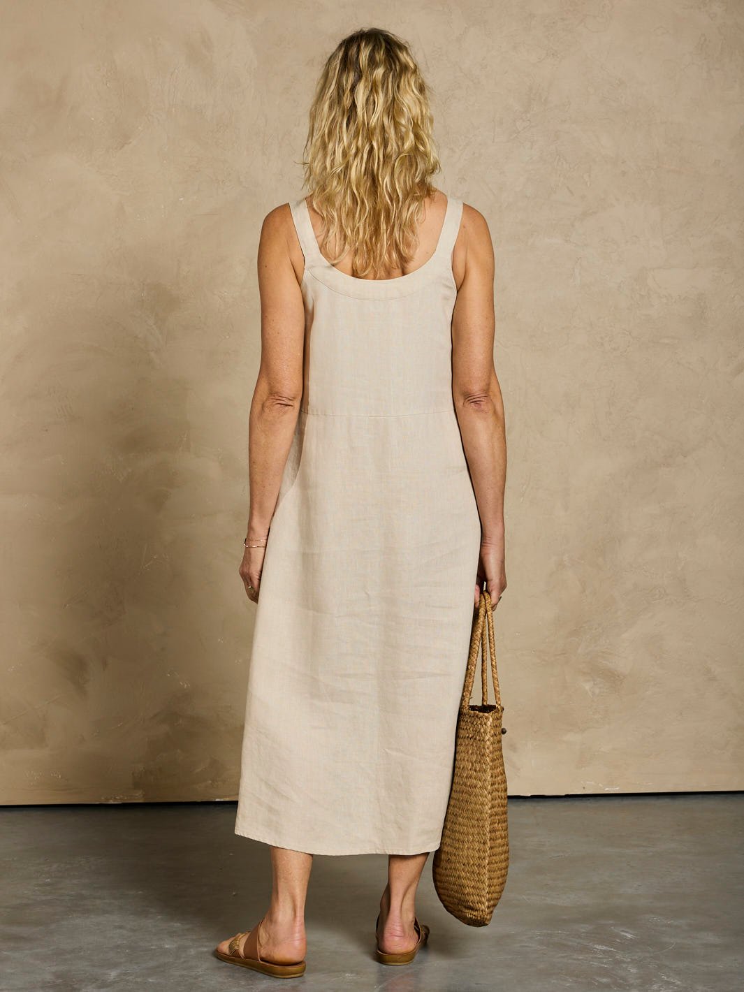 The Angelina Linen Dress is crafted from 100% natural linen with a softly structured A-line shape that flatters effortlessly. Designed with wide straps. gentle gathers. and bound finishes. every detail is thoughtfully considered to hold its shape and enhance yours. An easy. elegant piece that brings top-to-toe style and comfort. perfect for Mediterranean city strolls and sun-drenched lunches.