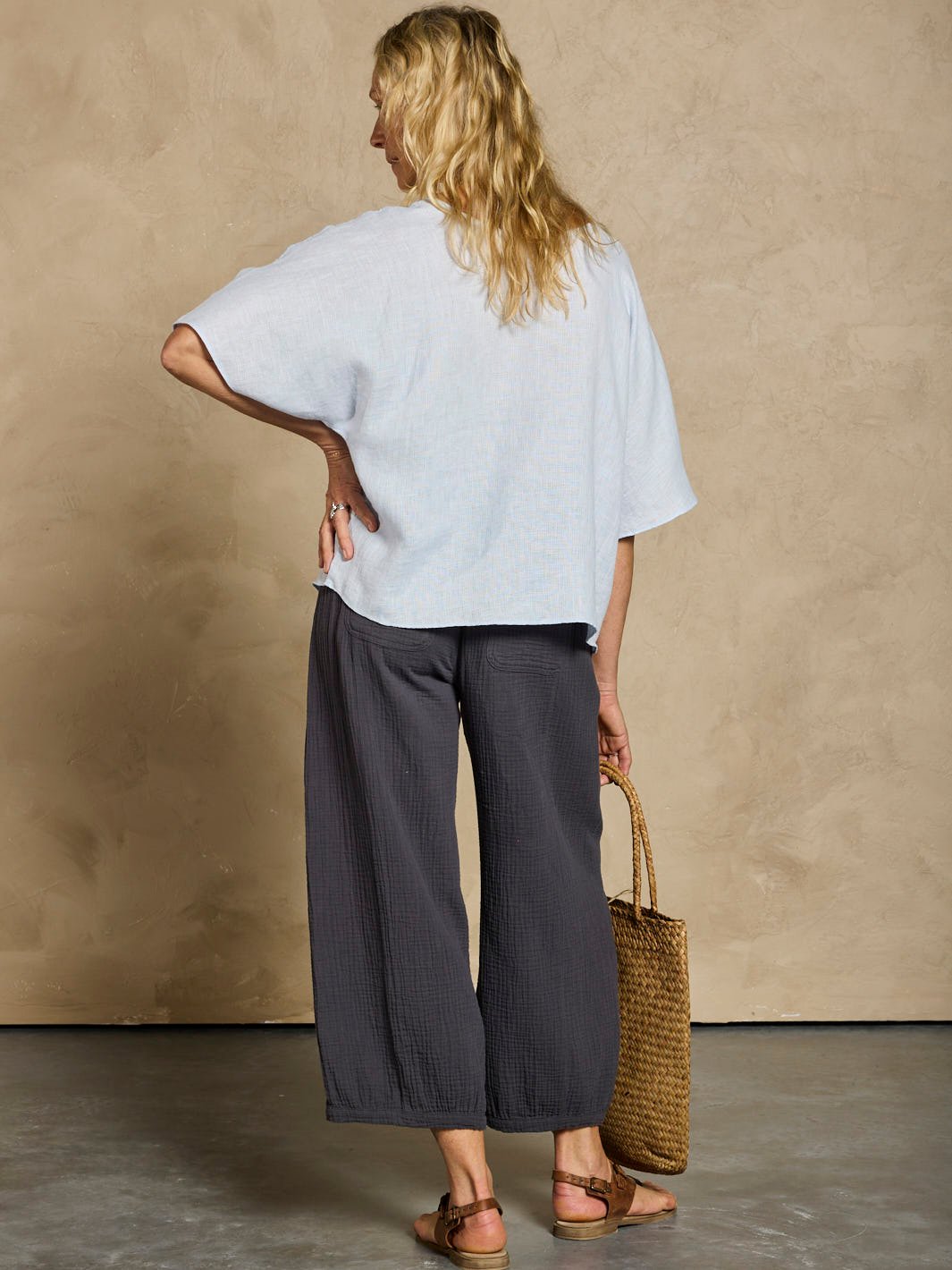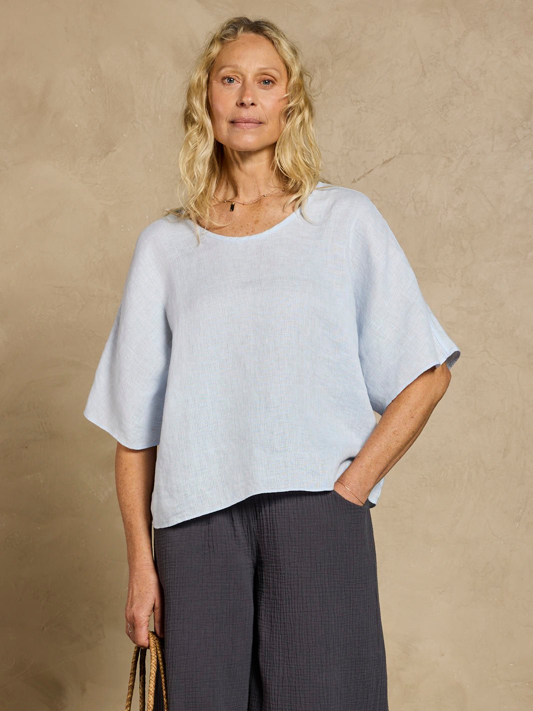 Crafted from softly textured 100% linen. the Selene Top drapes gracefully with a relaxed batwing silhouette and refined finishing touches. It provides flattering upper arm coverage and a forgiving fit for enhanced comfort and confidence. Ideal for Mediterranean travel and everyday luxury. this timeless essential is effortlessly wearable. endlessly versatile. and always polished.